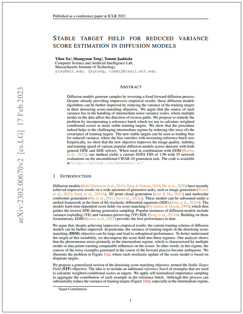 - STF enhances the stability of converged score-based models on CIFAR-10 and CelebA 642 across random seeds and accelerates the training of score-based models while obtaining comparable or better FID scores.